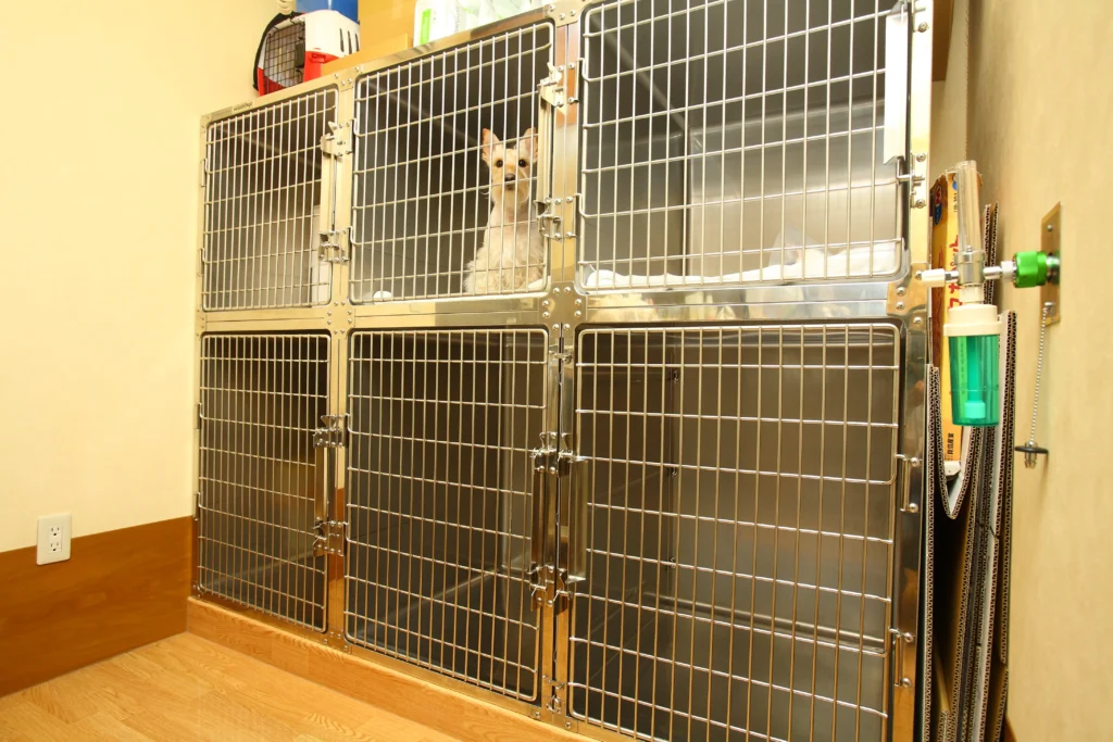 入院室はガラス張りになっているので、検査室や診察中でもお預かりしている動物たちの状態を確認できます。