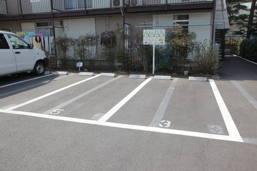 病院前に3台、そして病院横に2台駐車することが可能です。病院横は③⑤の駐車場をご利用ください。